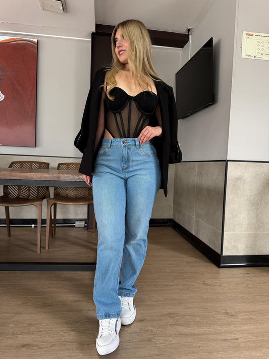 Jean Momfit mujer tono azul claro
