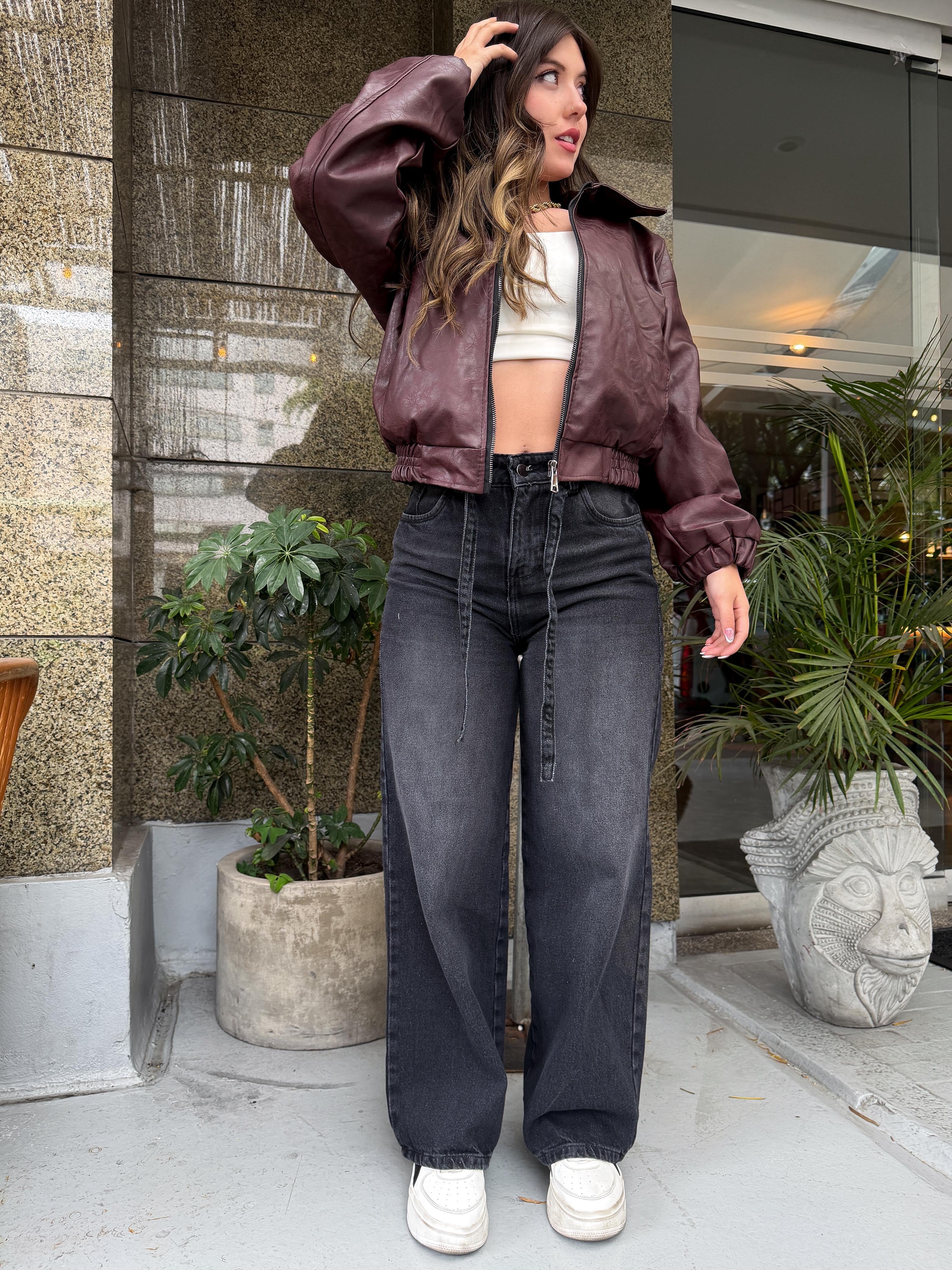 Nuestro Jean efecto cuero esta elaborado en una calidad premium, es tiro alto su tela es strech y tiene pinzas para un efecto levanta cola