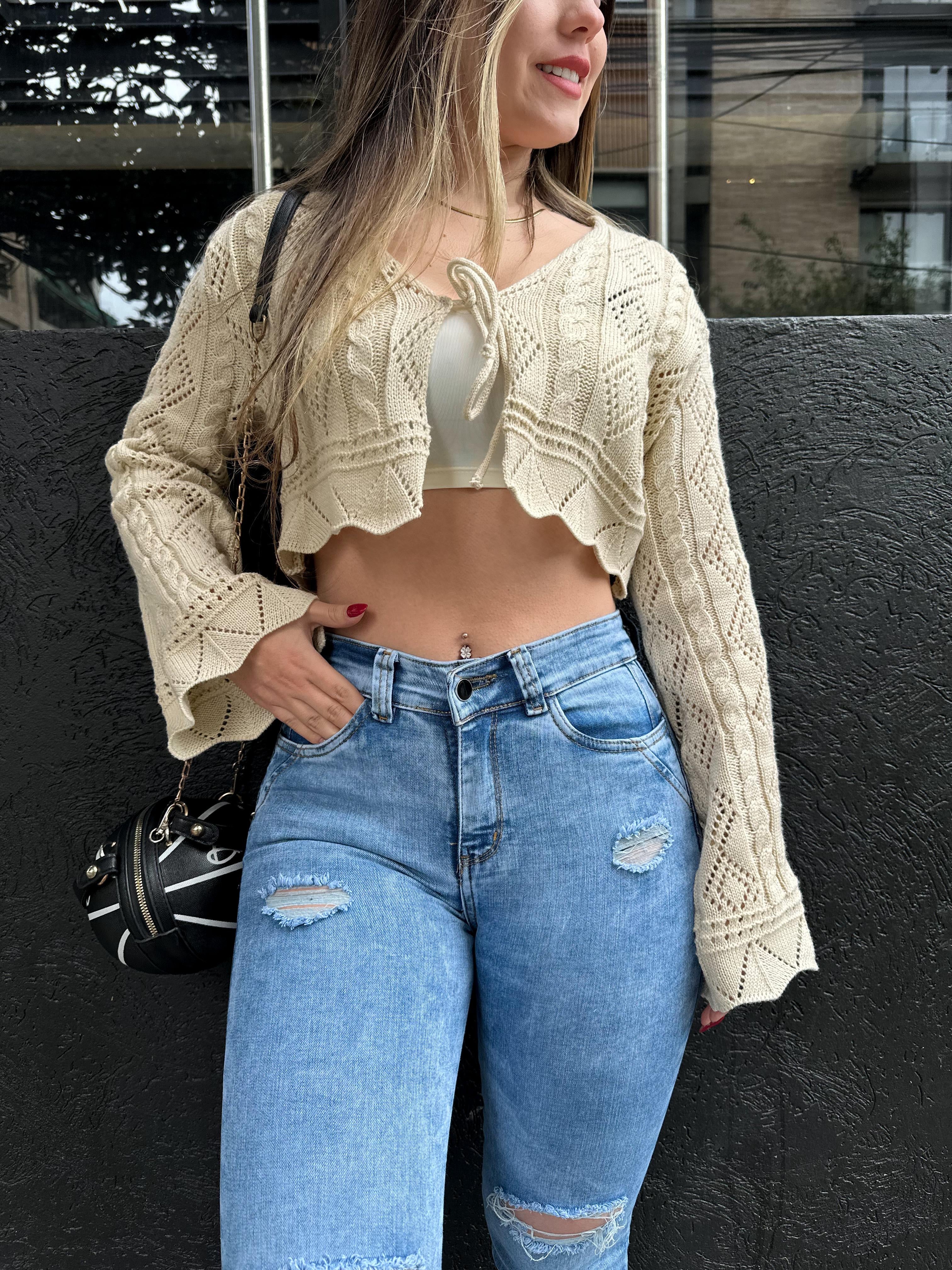 Jean skinny mujer tiro alto levanta cola azul claro roto rodilla