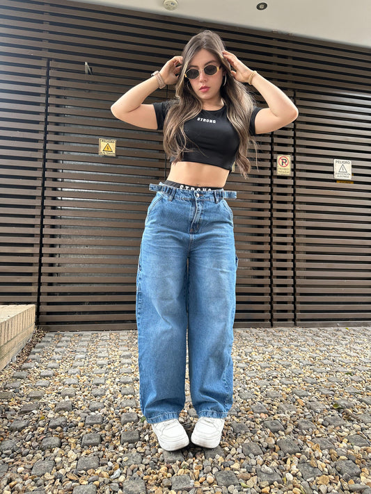 Jean baggy con ajuste de cintura tono azul