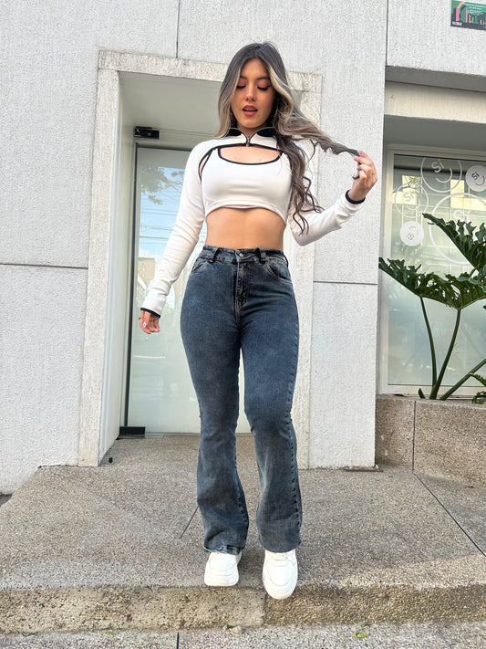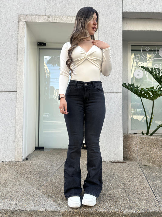 Jean flare mujer tono gris
