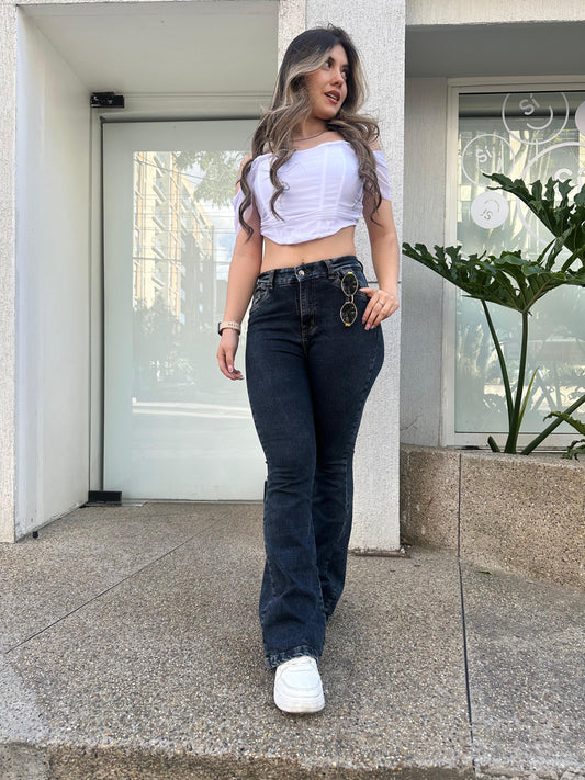 Jean flare mujer tono azul oscuro