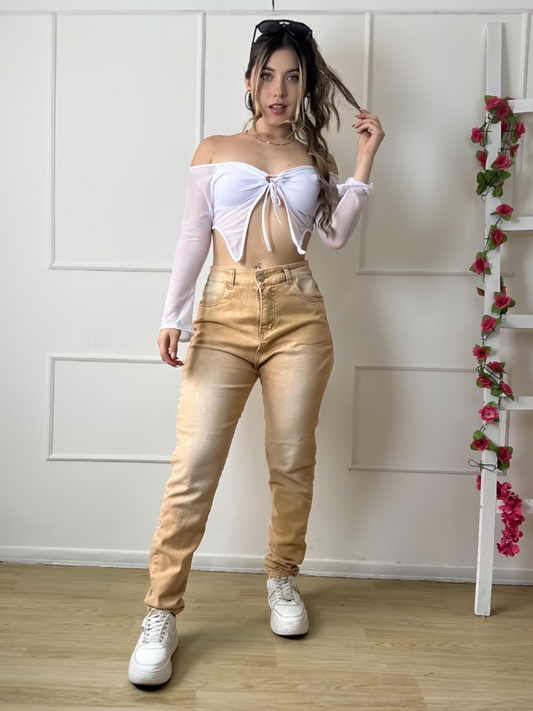 Jean Skinny Mujer stretch tiro alto Negro roto rodilla