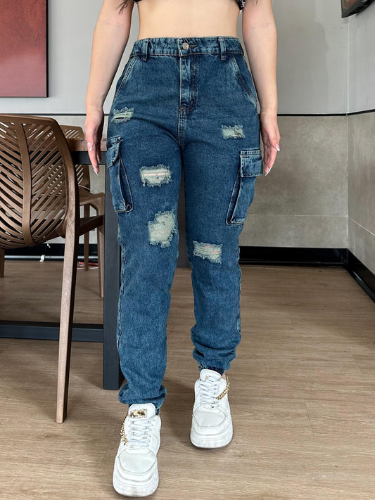 Jean cargo mujer tono azul clásico