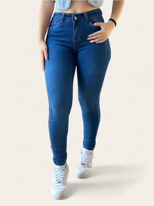 Jean skinny tiro alto mujer strech levanta cola tono azul fros
