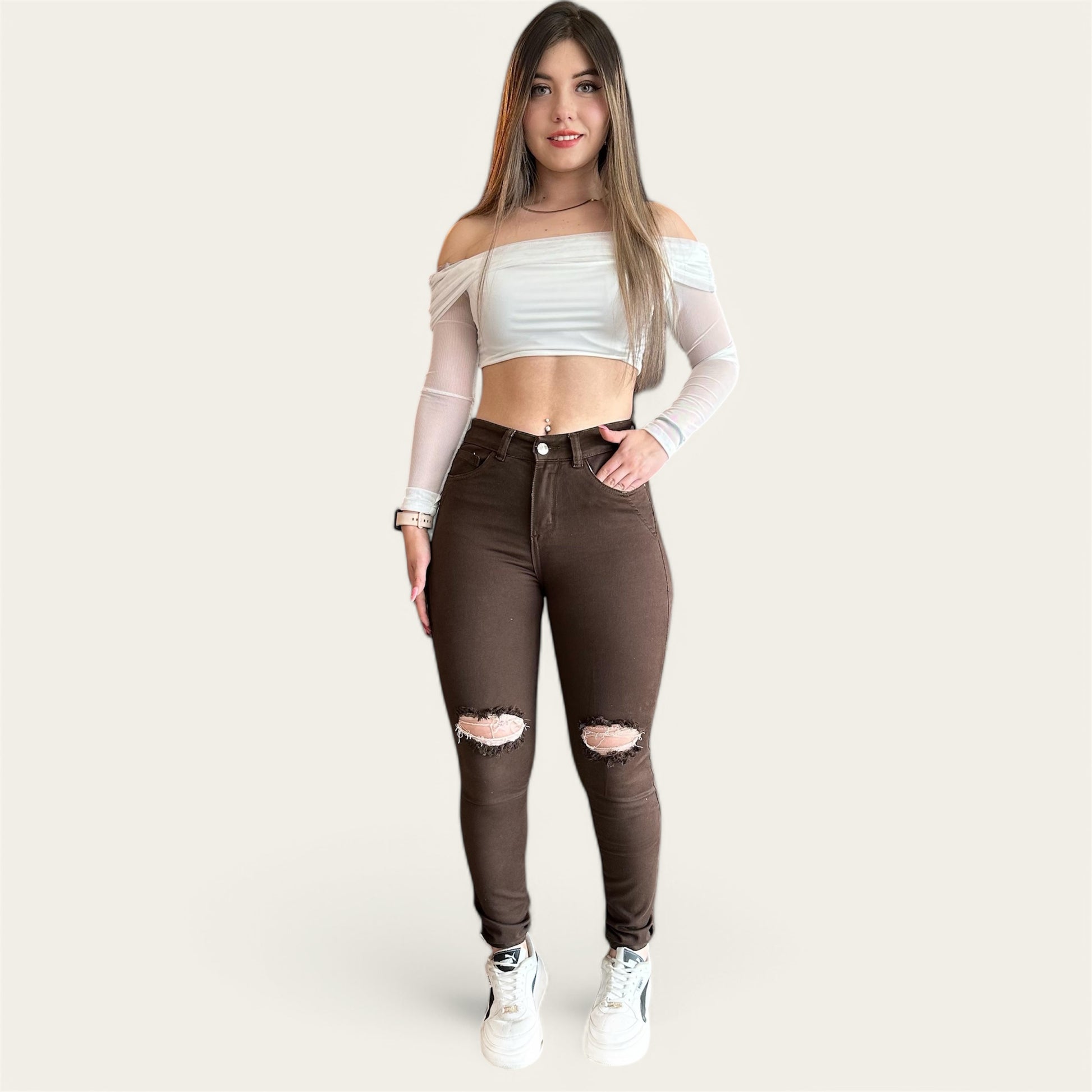 ean Skinny Tono Moka con Rotos – Sofisticación y Vanguardia en una Prenda