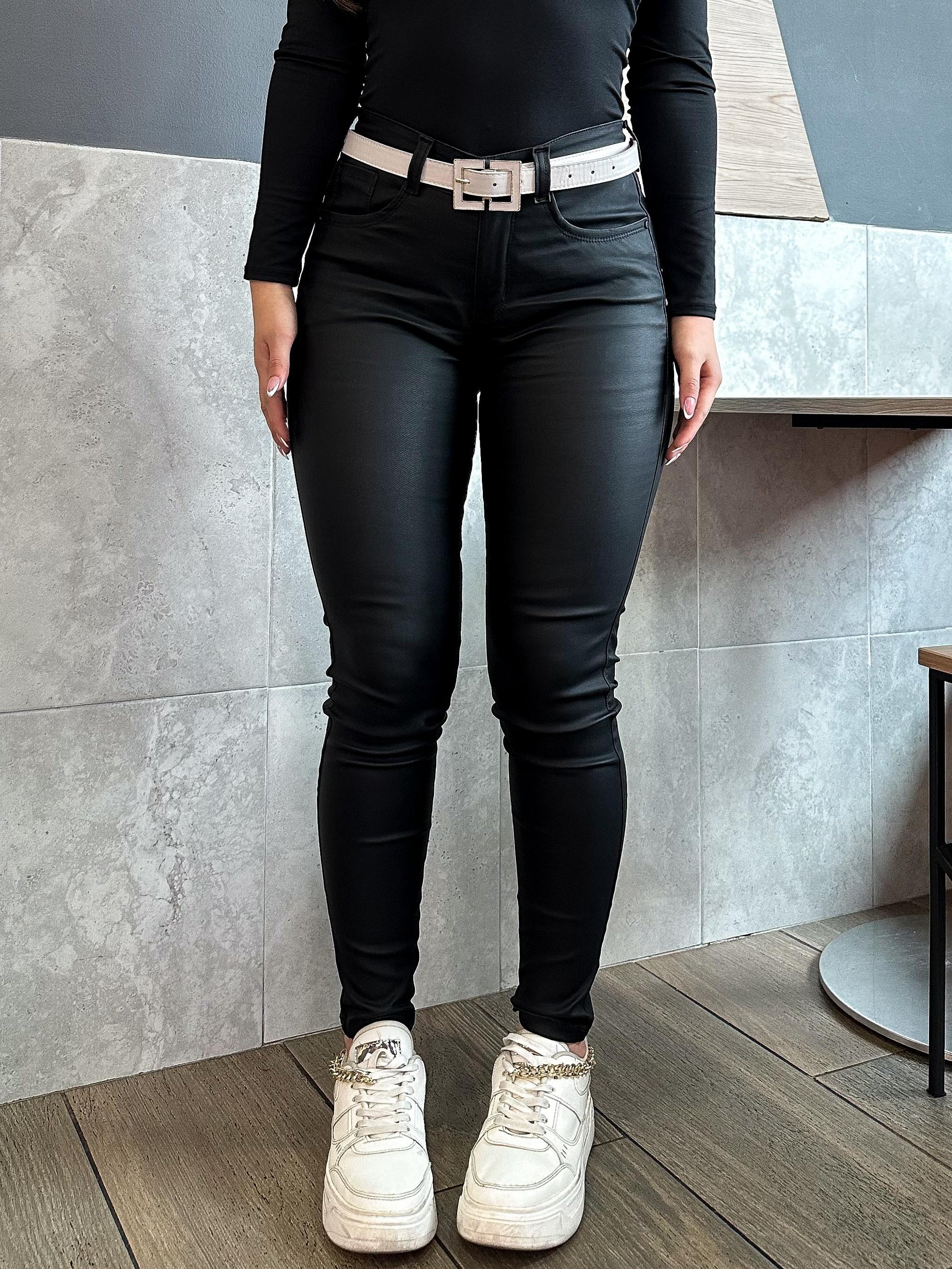 Pantalon Skinny Mujer tiro alto stretch Efecto cuero